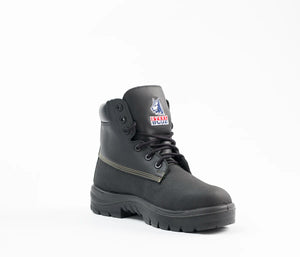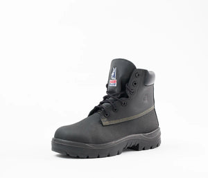 The Warragul is a 150mm Men’s galosh style, Lace Up Ankle Boot with padded collar and bellows tongue. A popular 100% comfortable choice for Truck Maintenance, Industrial Cleaners and Welders. The durable Nitrile Outsole is heat resistant to 300°C and offers Anti-Static properties. The Warragul includes a 200 joule safety Steel Toe Cap and is made from premium Chemical Resistant TECtuff® Leather.