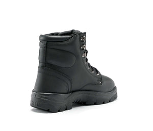 150mm men’s derby style, lace-up Ankle Boots with padded collar and tongue. This styles features a Metatarsal Guard offering impact protection to the metatarsal bones found higher up in the foot. A popular, 100% comfortable choice for Scaffolders, Factory Hands and Drillers with a TPU outsole heat resistant to 130 degrees and a 200 joule safety steel toecap. The Argyle-Met has anti-static properties and premium water resistant leather available in black.