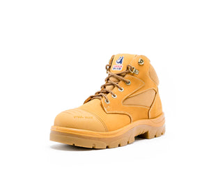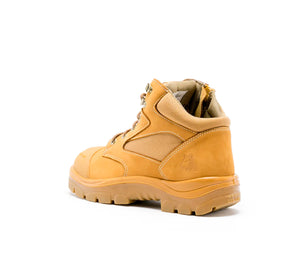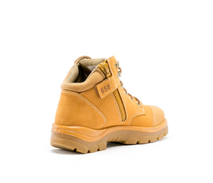The Parkes Zip is a Men’s 95mm hiker-style lace-up Ankle Boot with an industrial grade zipper so you don’t have to worry about tying up laces every day. With a new-look scuff cap to increase the longevity of your boots, the Parkes Zip is a popular choice for Warehouse Staff, Construction and Courier Drivers. The boot also features a heat resistant TPU outsole to 130 degrees, a 200 joule safety steel toe cap and premium New Zealand water resistant leather available in black or wheat coloured Nubuck.